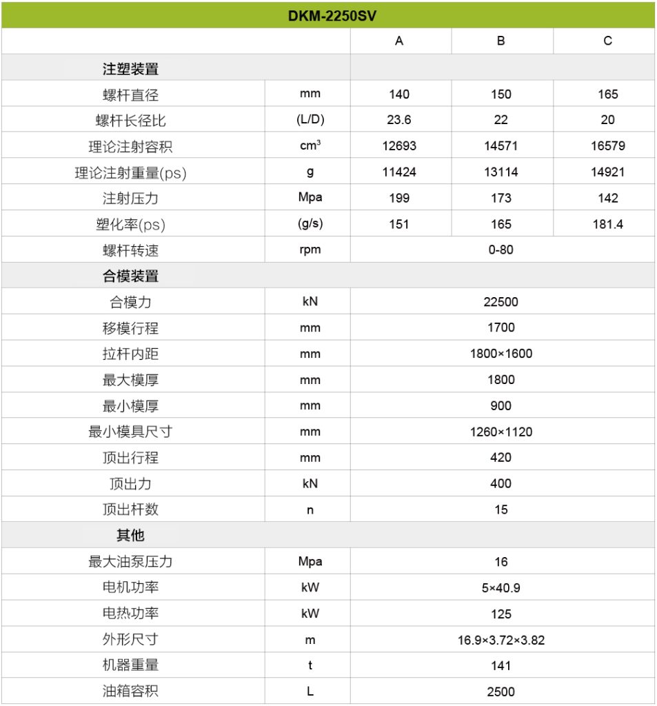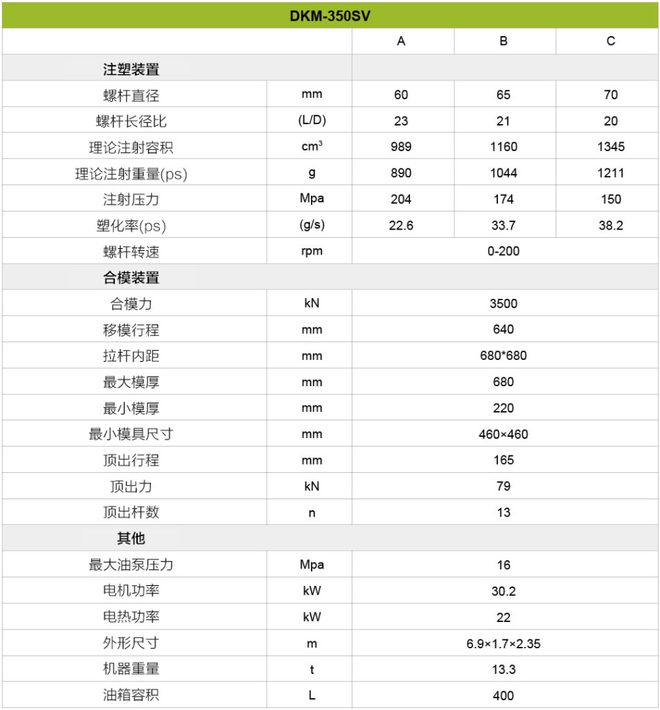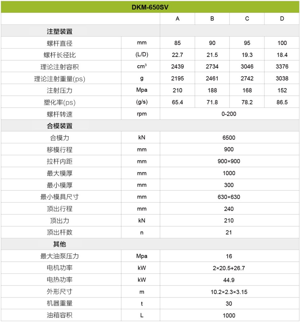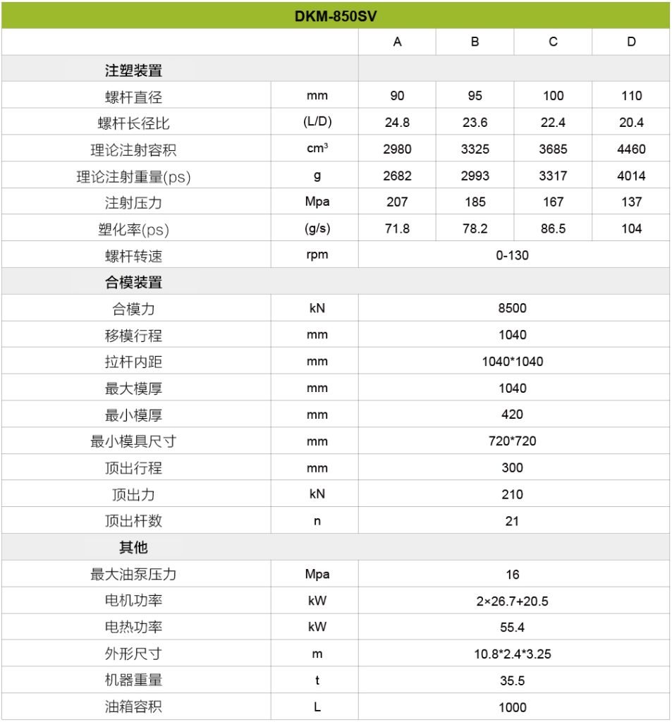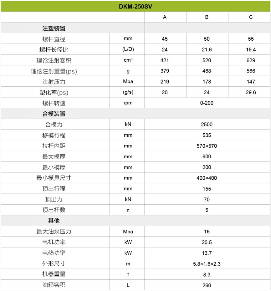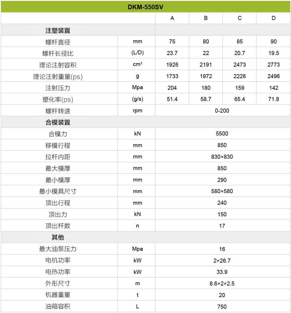 总之,对于寻求先进技术、多功能性和制造操作可靠性的企业来说,这台机器是一个非常有利的选择。凭借其广泛的吨位选择,该机器可以满足各种项目规模,并为未来的增长提供可扩展性。采用伺服电机驱动系统和高速注射功能等先进技术,可确保卓越的性能、能效和精确控制。用户友好的界面和控制使操作直观高效,而DKM的全面支持和服务保证了从安装到持续维护的平稳体验。此外,该机器的成本效益及其持久的质量使其成为旨在最大限度地提高生产力和盈利能力的企业的明智投资。总的来说,选择这台机器提供了一种可靠高效的解决方案,以满足多样化的生产需求,并在竞争激烈的制造业中取得成功。